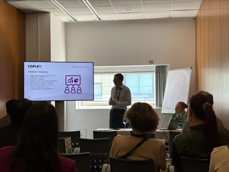Recent debate over the best way to process cascade impaction data was behind our decision to focus on Aerodynamic Particle Size Distribution metrics and how to calculate them in this year’s workshop. It proved a fruitful topic with good attendance across all three sessions. There was particular interest in the calculation of key metrics, such as Mass Median Aerodynamic Diameter (MMAD) and Geometric Standard Deviation (GSD), using the more recent advice USP <1604> compared to historical guidance in USP <601>, with attendees seeking clarification. We were able to explain some of the background on the topic and perhaps most usefully demonstrate how both methods can be accommodated in Copley’s Inhalytix software, making it easy to determine the potential impact of using one rather than the other.
