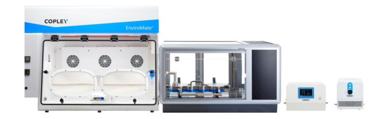 Accommodating all types of dose uniformity sampling apparatus and cascade impactor, EnviroMate™ is a cost-effective, compact, benchtop environmental chamber solution for analysts struggling to achieve stable environmental conditions for delivered dose uniformity (DDU) and aerodynamic particle size distribution (APSD) testing. Maintaining uniform temperature and humidity distribution throughout the chamber, whilst the built-in anti-static system minimises the effects of electrostatic charge, EnviroMate provides analysts with consistent environmental control in the immediate test area, enhancing OINDP test data accuracy and repeatability.