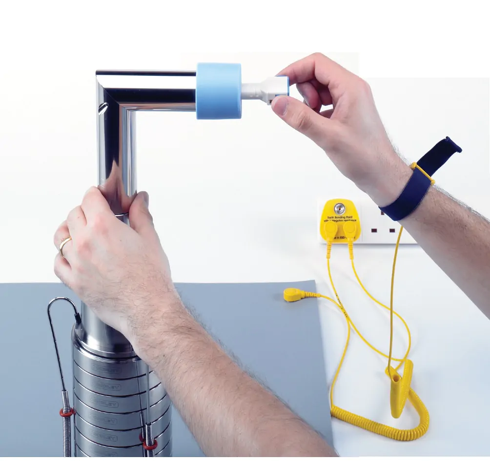 防静电接地套件可以消除在测试准备过程中测试仪器、被测试的吸入产品和其他接触实验室工作台的非导电物品时产生的静电积聚,使分析人员安全接地,有效消除静电。 防静电接地套件包含: