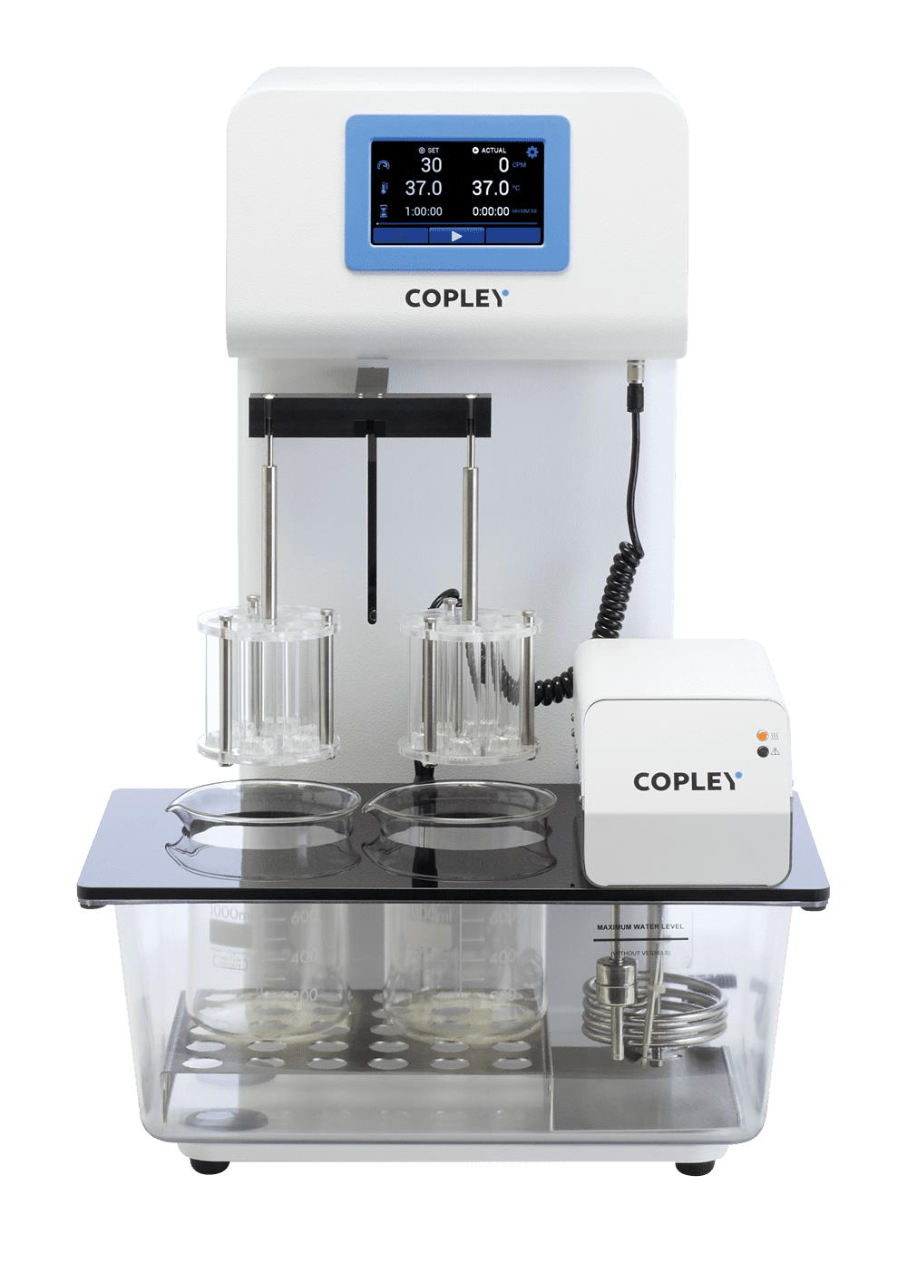 DTGi 400i融变时限测试仪采用直观的触摸屏控制模式,最多支持四个吊篮架组件。 人性化设计让崩解特性评估工作变成简单的触摸按钮操作。