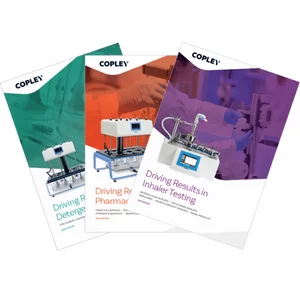Copley Scientific’s pharmaceutical product range includes test equipment for: delivered dose uniformity and aerodynamic particle size measurement of metered-dose inhalers, dry powder inhalers, nebulizers and nasal sprays; as well as tablets (dissolution, disintegration, friability and hardness) capsules, powders, suppositories and transdermals.
